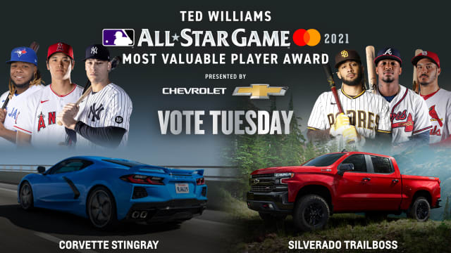 메이저리그 홈페이지에서 올스타 게임 MVP 투표 광고를 봤습니다. 6명의 모델 중 방망이가 없는 선수는 에인절스 오타니인데 오타니는 방망이가 없어도 방망이가 있는 것 같기도 하고 방망이가 있는 사진을 써야 맞는 것이 아닌가 생각하다가, 배너 디자이너가 방망이와 글러브 둘 다 들고 있는 사진 찾다가 없어서 그냥 대충 장비 없이 찍은 사진 쓴 것 같다는 생각도 했습니다. 선수들 아래에서는 메인 스폰서의 상품인 파란색 CORVETTE STINGRAY가 빨간색 SILVERADO TRAILBOSS에게 추격당하는 사진이 있네요. 개인적으로 타티스가 홈런도 치고 초특급 빠던에 미친 세레머니 한 방 보여주면 좋겠네요.