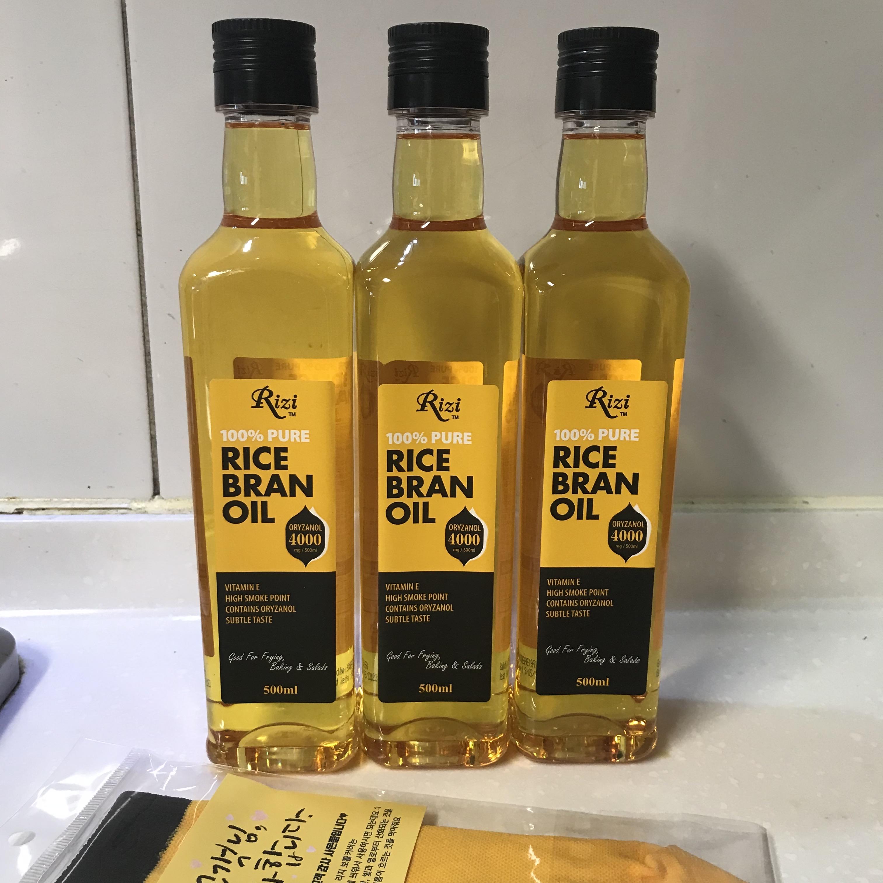 그렇게 고생해서 구입한 내 인생 첫 현미유가 집에 도착했는데 색깔도 영롱하고 예쁘네요. 첫 현미유 브랜드는 RIZI 리지라는 회사였어요. 100% PURE RICE BRAN OIL 이라고 이름이 적혀 있는데 공식 제품명은 리지 라이스브랜오일입니다.