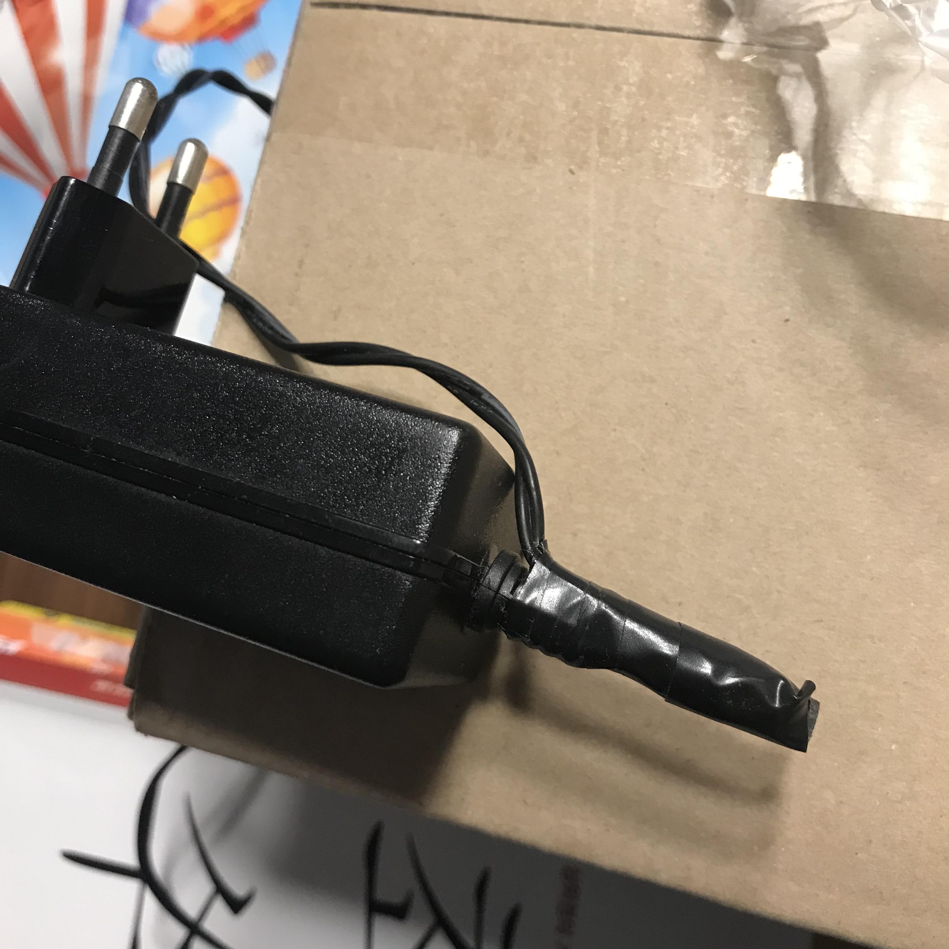 기존 전원 어댑터가 가끔 전원이 끊겨서 살펴보니 전선 어딘가에 접속불량이 있는 것 같았어요. 그래서 아래 사진에 보이는 것처럼 임시방편으로 잘 연결되는 타이밍에 검정 테이프로 고정을 시켰고 그 후로는 사용에 문제가 없었거든요. 이번에는 그 어떤 방법으로 접고 꼬우고 펼쳤다가 구기고 온갖 방법을 다 동원해봤지만 소용이 없었습니다. 그래서 어댑터를 새로 구입하기로 결정!