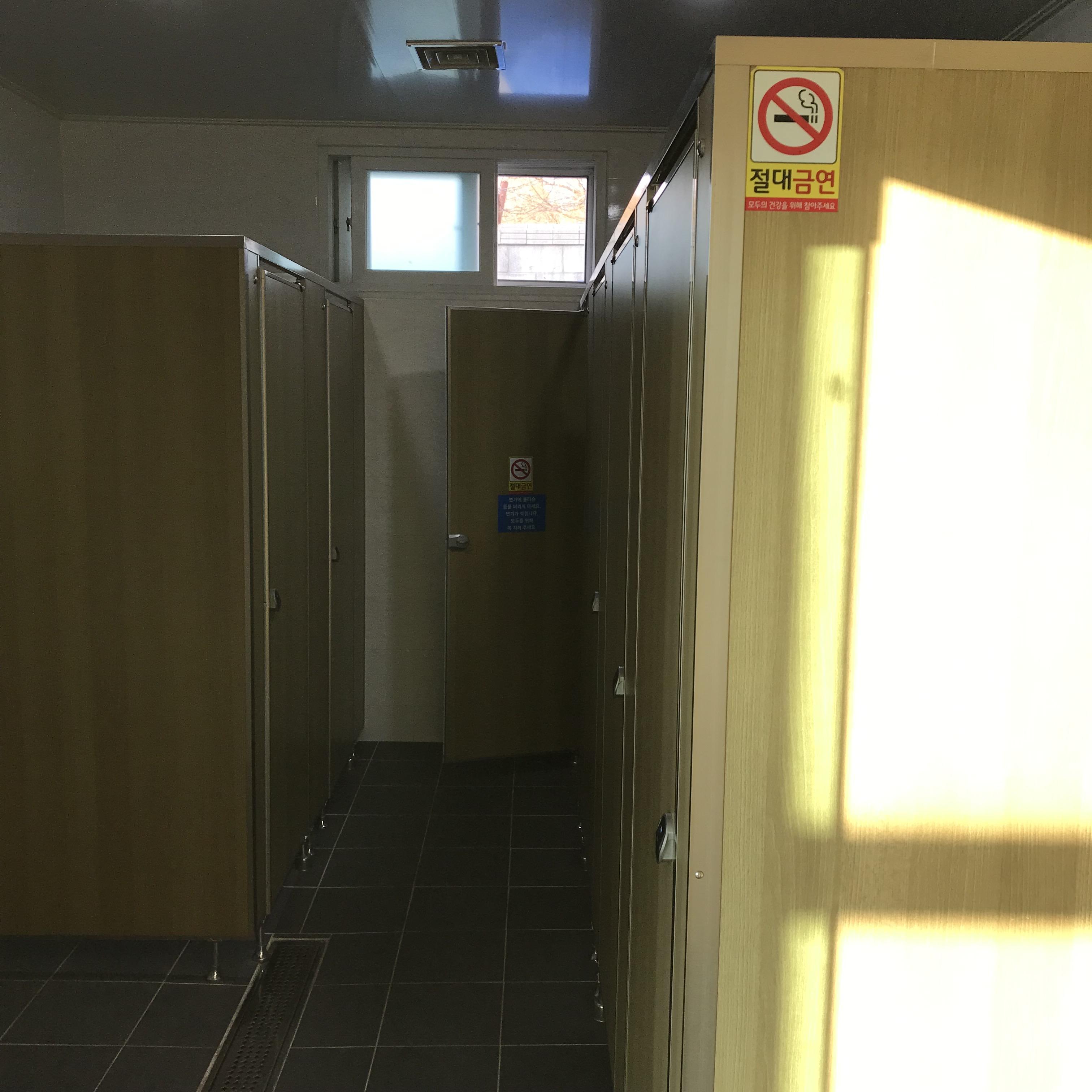 지난 일주일 야근만 하다가 제대로 씻지도 못하고 출발하는 바람에 당장 샤워부터 하고 싶었어요. 그리고 당장 햇반 좀 데위 먹어야해서 샤워장과 전자레인지를 체크하고 햇반을 뜨겁게 돌려봅니다. 3분 기다리면서 화장실 내부 소개를 하기 위해 아무도 없는 것을 확인하고 찰칵 소리 크게 나도록 사진 찍어봤어요. 당연히 화장실 내부는 절대 금연입니다. 그리고 샤워장은 코로나 때문에 여러 명이 동시에 이용할 수 없도록 이용 방법을 정리해서 붙여 놓으셨어요. 물이 너무 뜨거워서 화상 주의라는 말을 보니 마음이 든든합니다. 온도 조절 잘 해서 뜨거운 물로 지친 몸과 피곤한 마음을 달래봅니다.