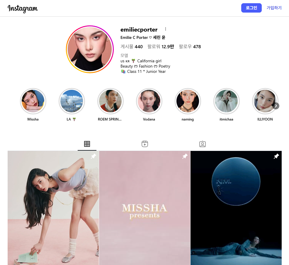 에밀리 포터 SNS 구경하러 가기 전에 공유합니다. 인스타를 더 열심히 하는 중인 것 같아요. 인스타가 팔로워 약 12만명, 페이스북은 1.4만명. 주소는 아래에 알려드릴게요.
